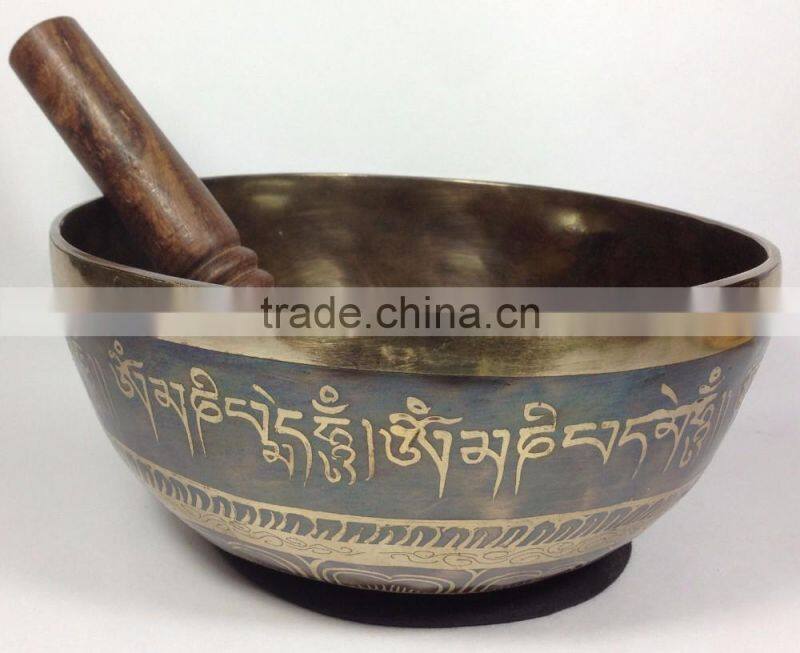 Blessing Buddha Carved Om Mane Padme Hum Tibetan Handmade Singing Bowl