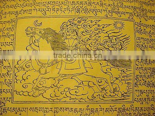 Tibetan prayer flags can be divided into many different types (two dozen), but the more common ones are the Lung- ta. Many people think that the word lung-ta means prayer flag, but it is not correct. Lung-ta literally means “Horse of Wind”, (“Lung” means Wind and “Ta” means Horse).