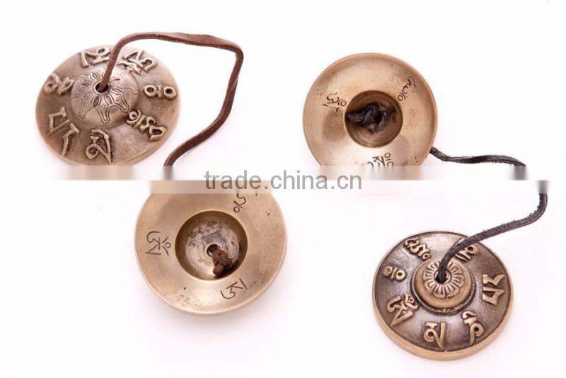Best-selling Meditation Tibetan Om Mani Padme Hun Carving Tingsha Cymbals