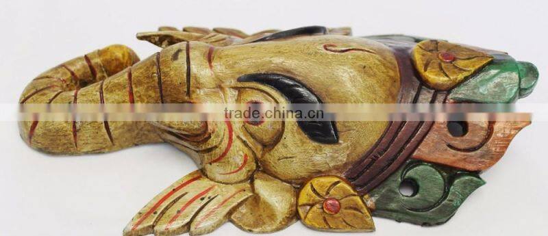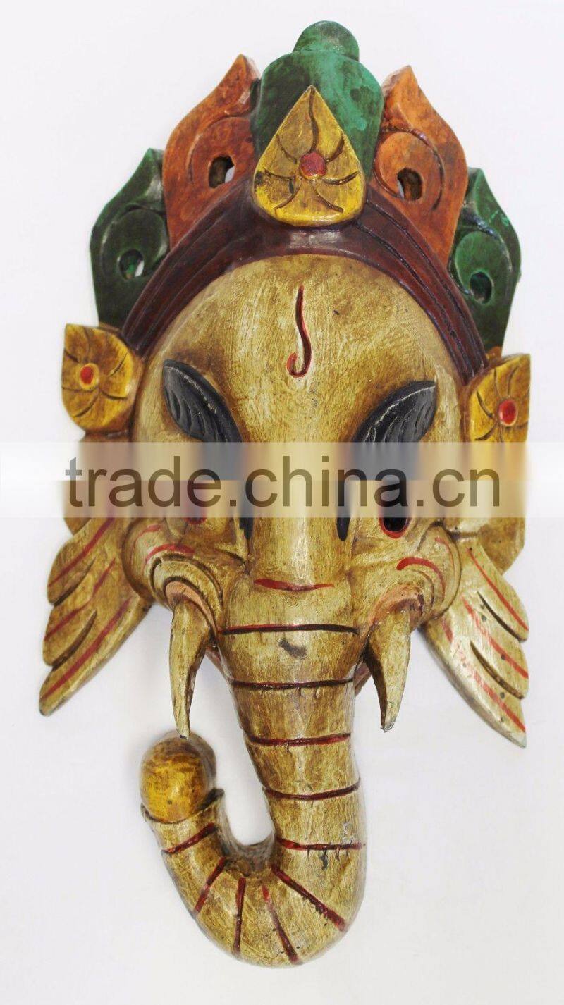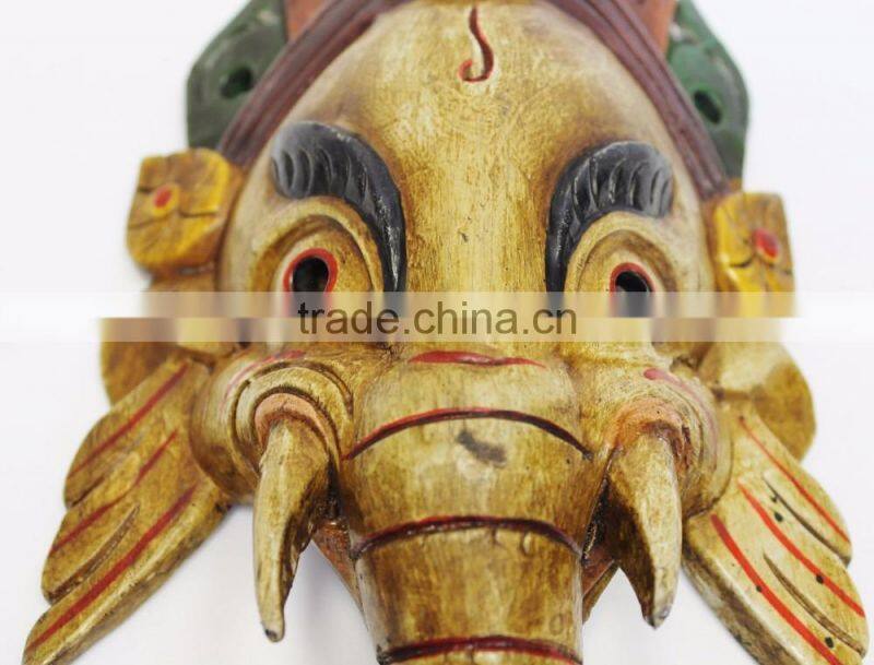 Hand Crafted Wooden Mask of Hindu Lord Ganesh Wall Hanging Made In Nepal