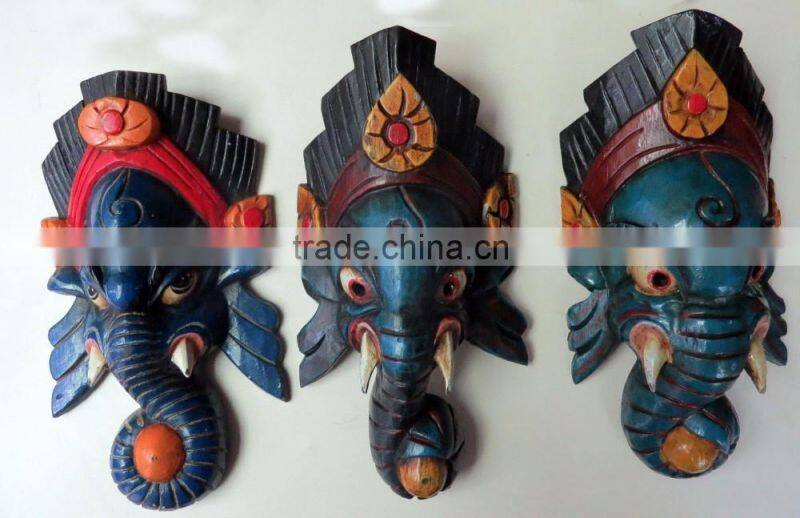 Hand Crafted Wall Hanging Wooden Mask of Hindu Lord Ganesh Nepal