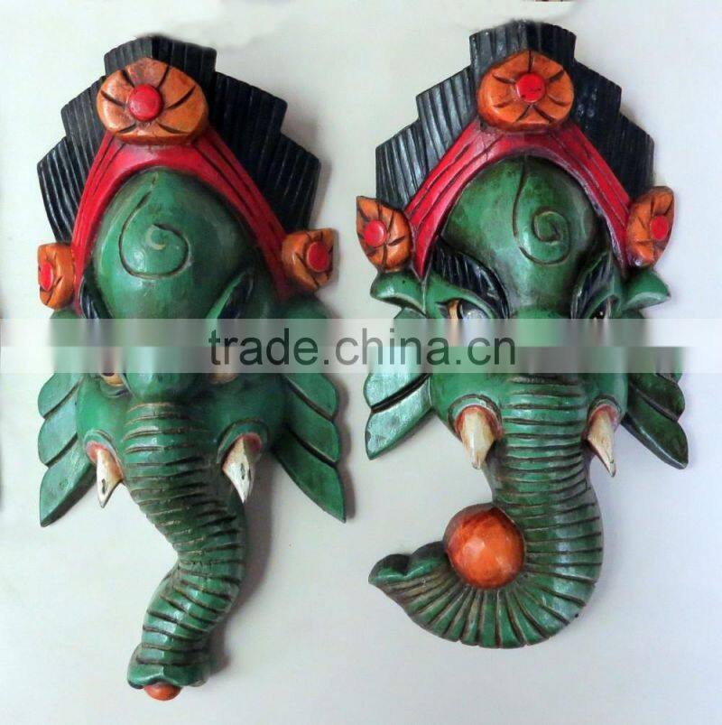 Hand Crafted Wooden Mask of Hindu Lord Ganesh Wall Hanging Made In Nepal
