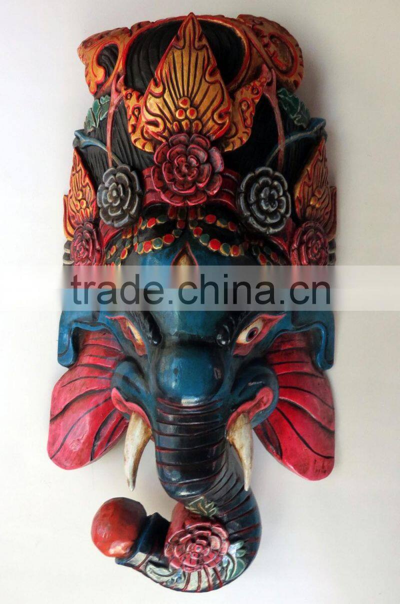 Home > Products > Wood Craft and Wooden Masks > Hand Crafted Wooden Mask of Hindu Lord Ganesh Wall Hanging Made In Nepal