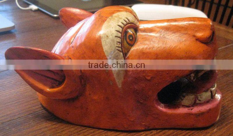 Hand Crafted Wooden Mask of Animal Face Wall Hanging Made In Nepal