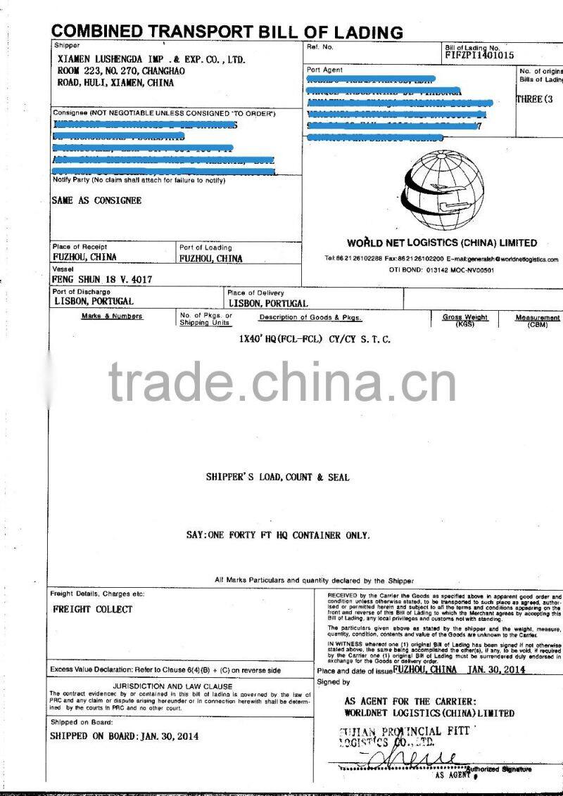 30% T/T before production,the rest payment should be made after sending the B/L and other relavant documents.