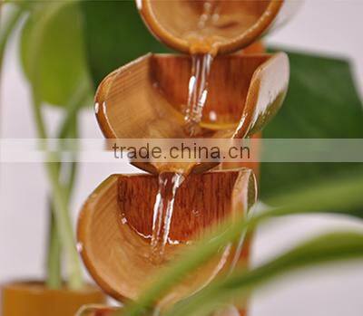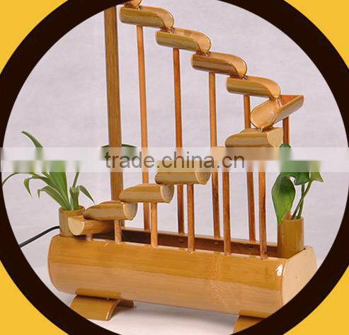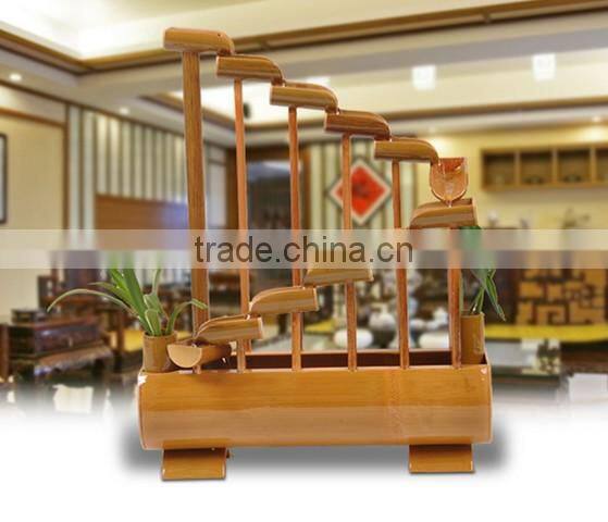 The bamboo spouts The length is 41cm,the width is 33cm.It produced by a one of the bamboo. In China called the steadily high, meaning the business is booming, life is getting better.It is used to decorate the living room, office, balcony and so on.The water fountain can better humidified air.