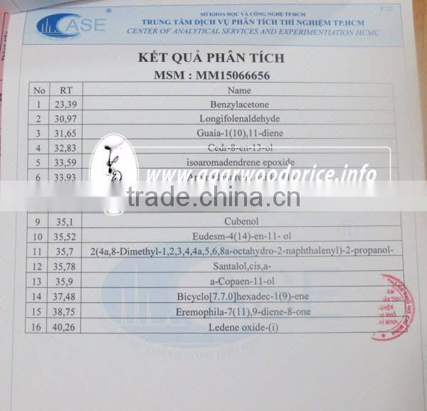 (Certificate of Analysis – Agarwood oil with highest purity)