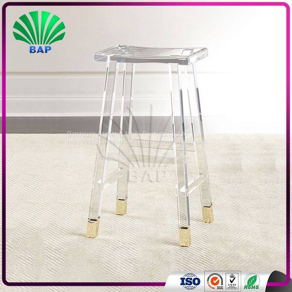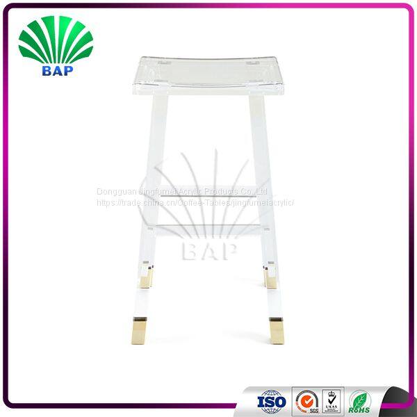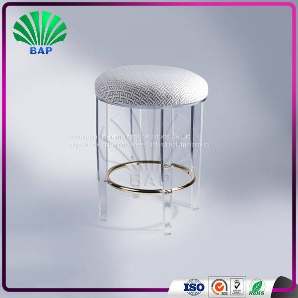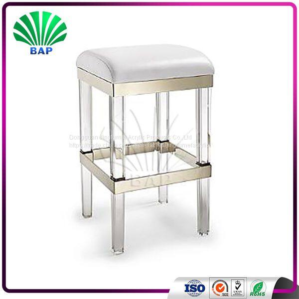 High Quality Acrylic Clear Ottomans High End Metal Decoration Plexiglass Bar Stool Dressing Room Storage Stool