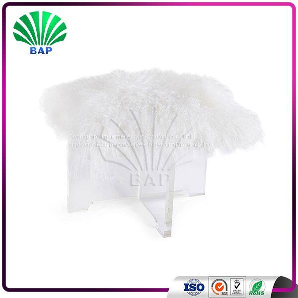 Popular Cheap Acrylic White Cover Stool White High Quality Fur Cover Stool Plexiglass Ottomans With Clear Legs