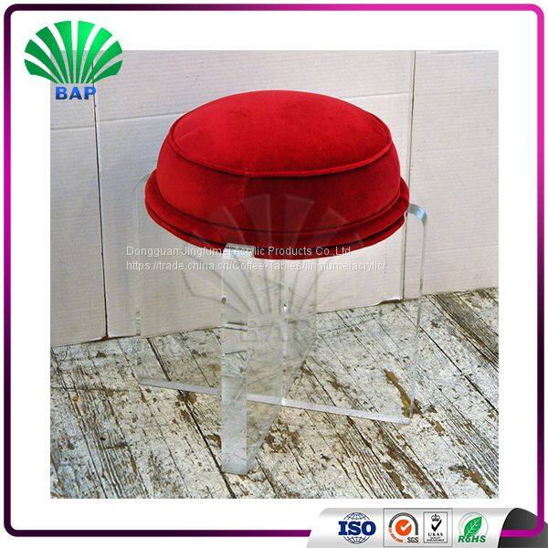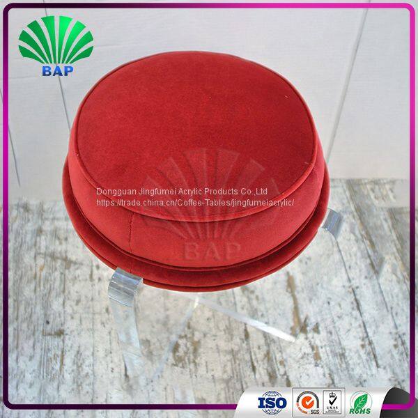 Portable Acrylic Red Cushion Kids Stool Reading Room Plexiglass Legs Stool Round Ottomans For Home