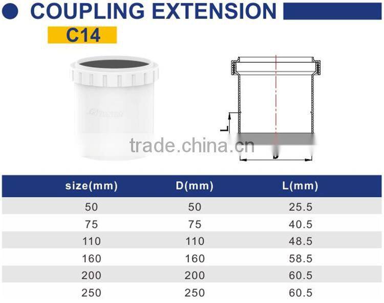 TY Factory price Manufacturer good quality PVC Fitting UPVC Rubber Joint plastic fitting for drainage GB coupling extention