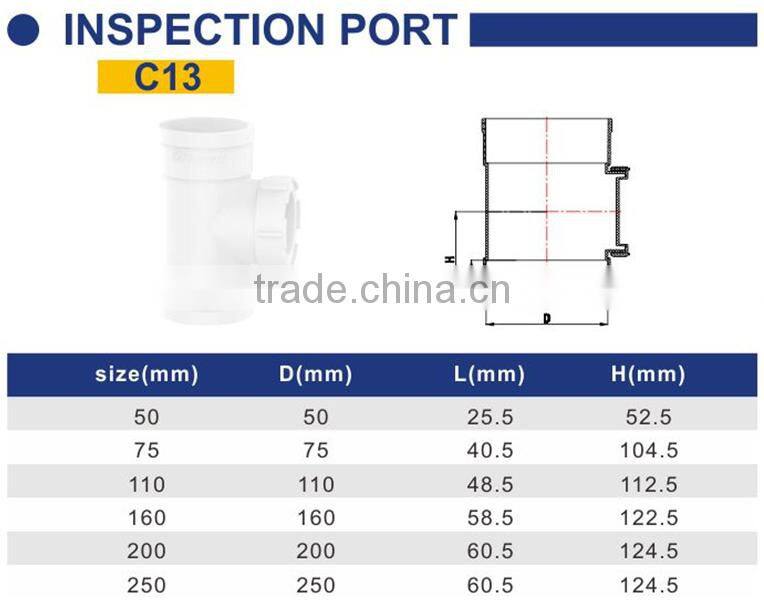 Tianyan Factory price Manufacturer good quality PVC Fitting UPVC Rubber Joint plastic fitting for drainage GB coupling inspection port