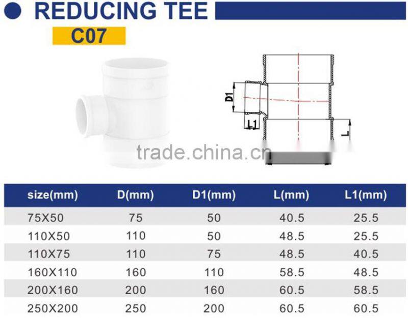 TY Taizhou Factory price Manufacturer good quality PVC Fitting UPVC Rubber Joint plastic fitting for drainage GB reducing tee