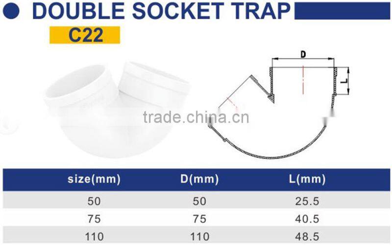Factory price Manufacturer good quality PVC Fitting UPVC Rubber Joint plastic fitting for drainage GB double socket trap