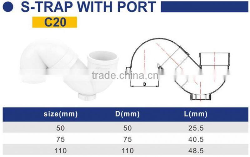 Factory price Manufacturer good quality PVC Fitting UPVC Rubber Joint plastic fitting for drainage GB S-trap with port