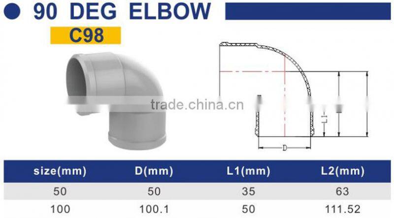 Factory price Manufacturer good quality PVC Fitting UPVC Rubber Joint plastic fitting for drainage GB 90 deg elbow