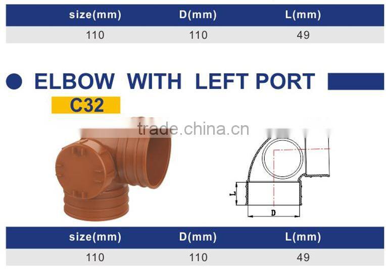 Factory price Manufacturer good quality PVC Fitting UPVC Rubber Joint plastic fitting for drainage GB elbow with left port