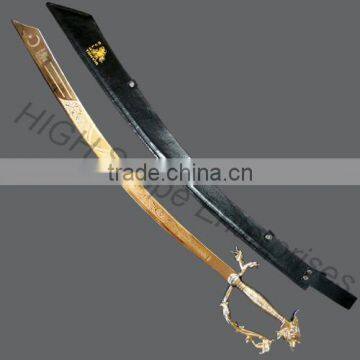Belly Dance Sword Gold Plated Made Stainless Steel With Cover Dragon Handle