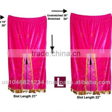 Our company produce quality belly dance velvet Skirt in many colors , with sequins and beads wok by hand. We accept buyer sizes and design . Per color and style 6 PCs are required .