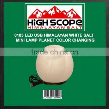 HIMALAYAN WHITE SALT USB POWERED LED MINI LAMP PLANET SHAPE