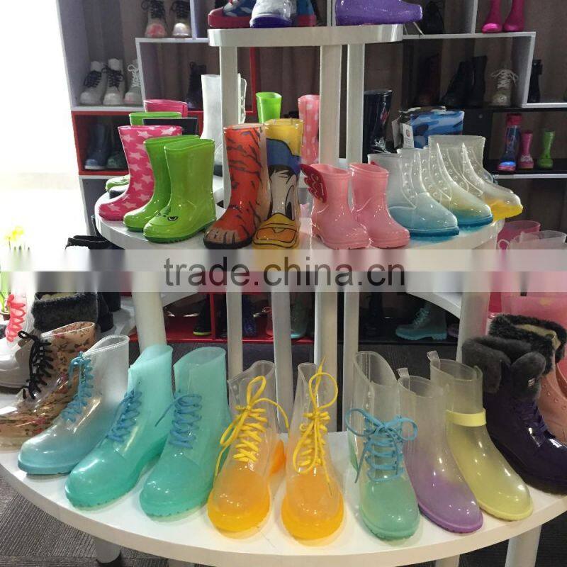 Low Height Lace up Injection Waterproof Fashion Girls Boys Rain Boots Shoes Supplier Manufacturer