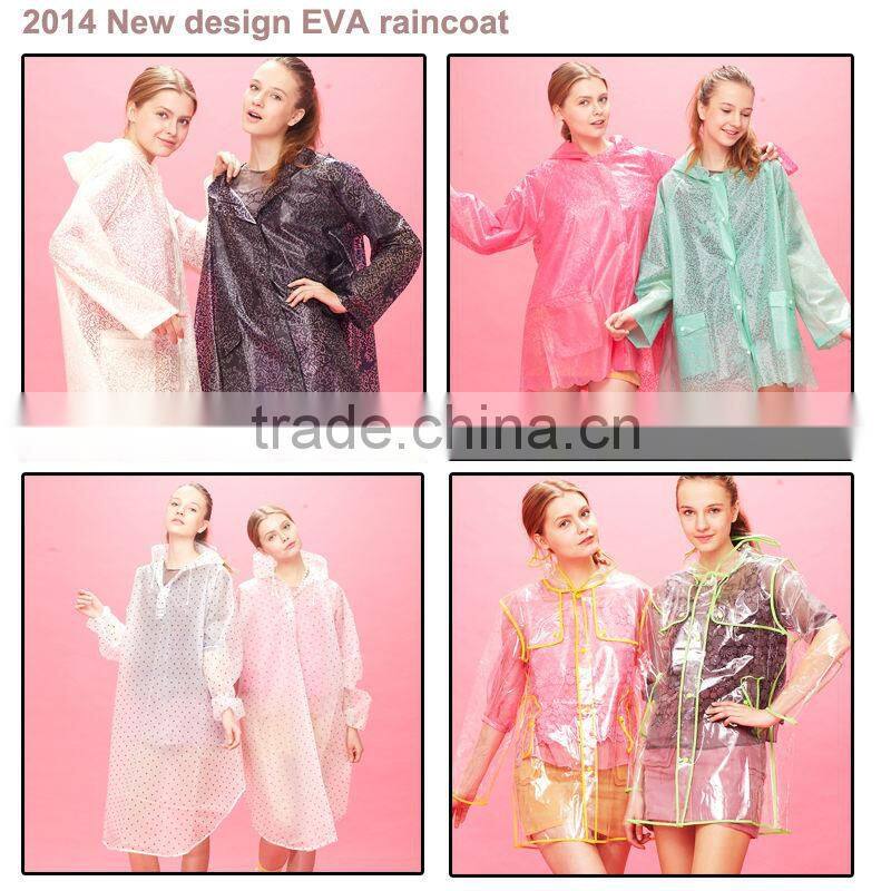2015 Fashion Transparent Rain Coat EVA Raincoat