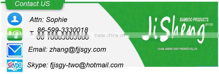 FUJIAN JISHENG CRAFT PRODUCTS CO.,LTD is located in the southeast of Wuyi Mountain in Zhenghe county of Fujian Province. It was established in 1989, the registered capital is over $8 million, posses over $9 million of enterprise assets with annual output over $13 million, covering the total area of 34,000 square meters, there are about 350 regular workers in our plant, we also establish a foreign trade branch in Fuzhou city. We have domestic advanced production equipment and technology, with sound management system. We have got the certification of ISO9001, ISO14000, TUV, BV, FSC, etc, and we have successfully reached the standard of many foreign professional audit firms and social responsibility audit. Our main products covering bamboo kitchenware series and furniture series, such as bamboo cutting board, bamboo flooring, bamboo tray, bamboo dinnerware, bamboo tea sets, bamboo flower stand and bamboo basin sets, all of these are made of natural old moso bamboo from high mountain, under many working process, with extractive craft and leading design, they are very popular in Europe, America, Southeast Asia and other countries due to unique, novel style. Customer first & Quality first is our principle. We sincerely welcome domestic and abroad clients to establish business relations with us! For more about us, please visit our website: www.fjjsgy.en.alibaba.com.