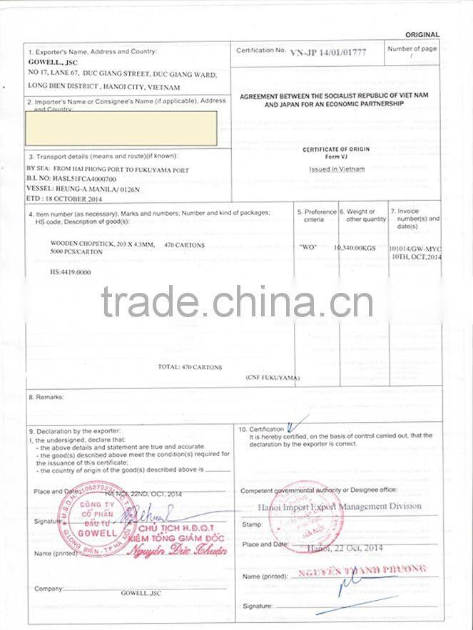 Packing: 100pairs/rubber band, 50 rubber bands packed in master carton with standard carton for exporting (5000pairs/carton). Or packing as customer's requirement