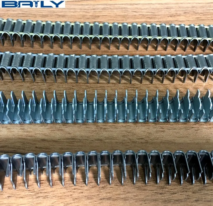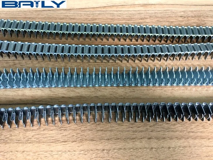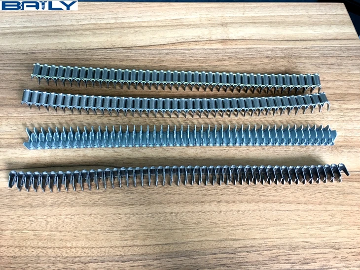 Because of the embedded style link with plastic wire inside, our staple could neither fall off easily nor get stuck in the pneumatic gun easily. They are mainly used in the connection between the frame and the spring of mattress or sofa and car seat assembling.
