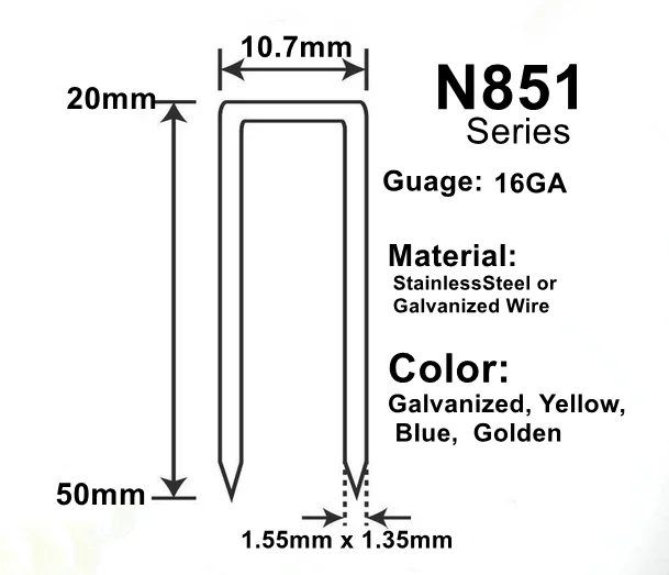 Factory Supply Custom Galvanized N851 Series Staples Crown: 10.80mm 16GA STAPLES