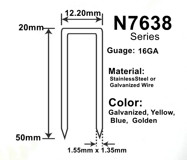 Factory Supply Custom Galvanized N950 Staples 16GA Crown: 12.20mm