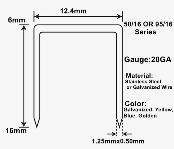 95 Series Staples Crown:12.40mm 20ga Staples 95/16, 95/14, 95/12, 95/10, 95/08, 95/06 Nails