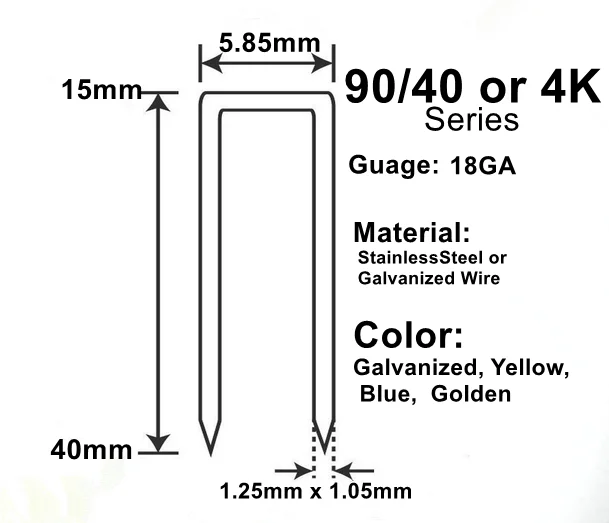 Factory Supply High Quality 90 Series Staples 18ga 5.85mm Crown for Furniture