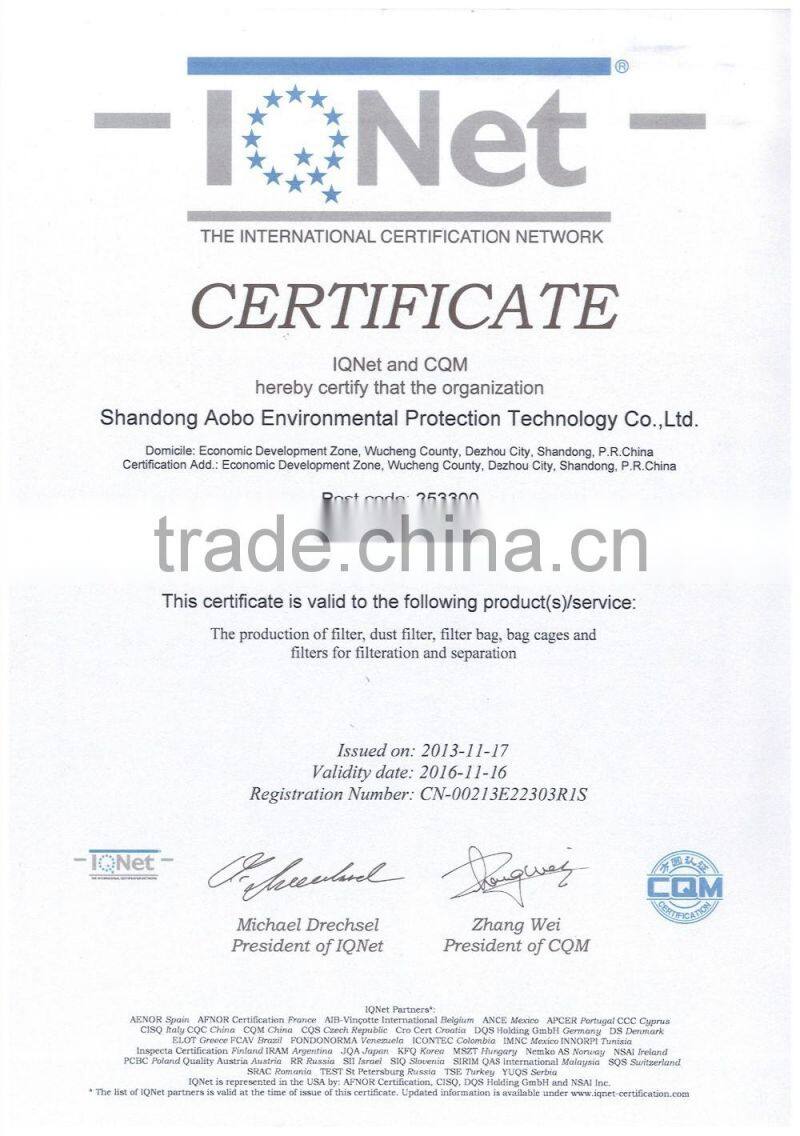 Shandong Aobo Environmental Protection Technology Co., Ltd. was established in 2007 with a registered capital of 50.08 million yuan, covering 150 acres, the company has advanced production equipment and scientific equipment, the main products are high temperature resistant fiber layer filter materials, filter bags, filters, bags cage and large efficient dust removal equipment, is China Association of filtration and separation unit, China's environmental protection industry backbone enterprises.