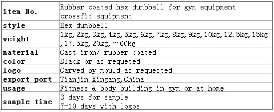 Rubber coated hex dumbbell for gym equipment crossfit equipment