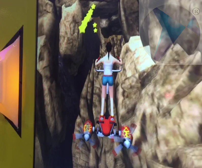 The player control the joystick to turn left, right, squat and jump to avoid obstacles.