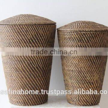 Set of 2 High Rattan Storage Baskets With Lid