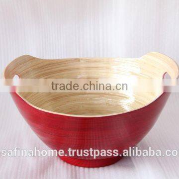 Boat Shape Colored Lacquer Bamboo Bowl With Handles