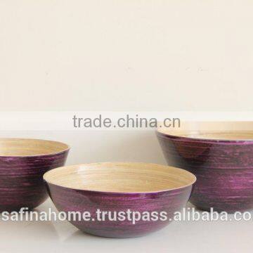Round Purple Colored Lacquer Bamboo Salad Bowl