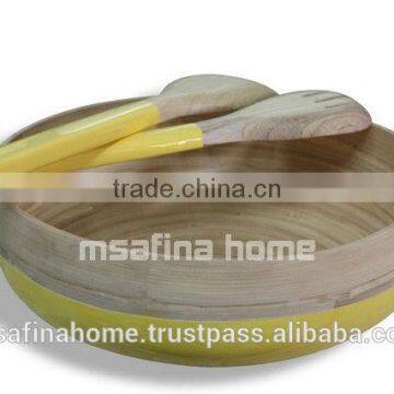 Set of 1 Round Bamboo Salad Bowl and 2 Bamboo Salad Servers