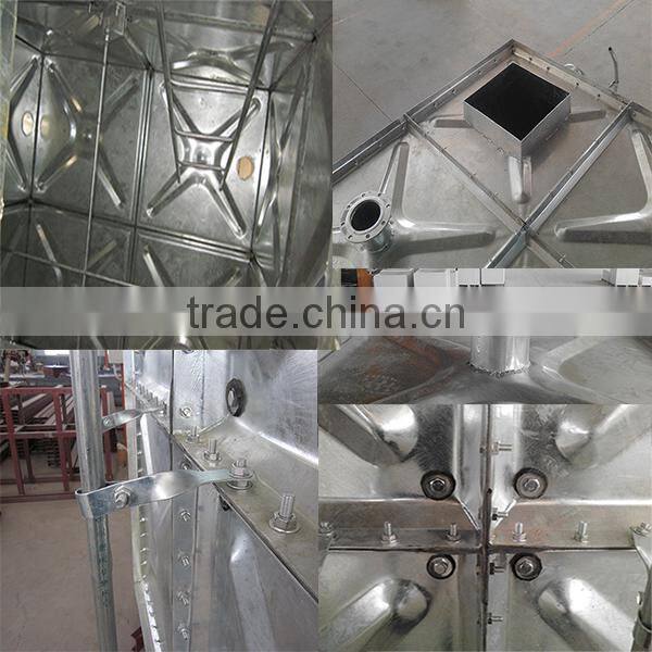 Hot dip galvanized steel water tank is anti-corrosion, anti-aging, no distorsion, no infiltration and leakage. Tank is easy to clean and conveniently to install and assemble. It can storage not only hot water, but also cold water, and has a better shockproof and shock resistant ability.