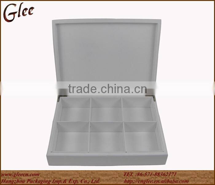 Gray 6 compartment solid wooden tea box packing box