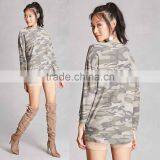 100 Polyester Sweatshirt Women Round Neck Long Sleeve Camo Longline Sweater Without Hood