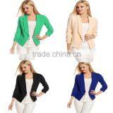 Ladies Office Blazer Jackets Formal 3/4 Sleeve Open Front Short Style Cardigan 100% Polyester New Model Designer Blazer
