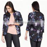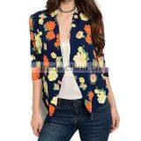 Ladies Blazer Designs Feminine Lightweight Sexy Navy Floral Open Three Quarter Sleeve Blazer Jackets Office Wear