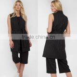 Womens Clothes 2017 Smarter Style Belted Waist Trendy Youthful Business Pinstripe Longline Sleeveless Jacket For Ladies