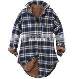 Fleece Jacket Men Women Checkered Plaid Sherpa Lined Flannel Long Shirt Sherpa Fleece Fabric Jacket