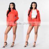 Export Clothes 100% Polyester Ribbed Hemline Sporty Stripe Sleeves Zip Up Sports Jacket With Shorts Suits