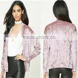 Wholesale Pink Fashion New Bomber Jackets Crushed Zip Up Front Sports Baseball Varsity Jackets Polyester Velvet Bomber Jacket