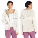 Sherpa Fabric Reversible Cardigan Jackets 100% Polyester Women's Pockets Hooded Open Front Plush Sherpa Cardigan
